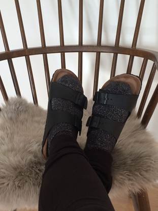 Why It Works: The black straps cut through all those warm tones like eyeliner for your outfit. They balance the layers, add edge, and say, “Yes, I’m wearing sandals in November. Cope.”