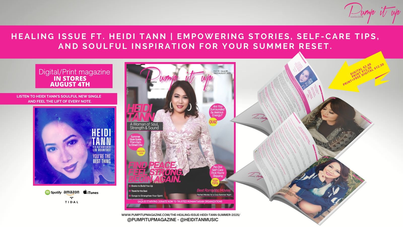 Healing Issue Heidi Tann is your go-to summer companion for inner peace, self-love, and growth. This special edition of Pump It Up Magazine features internationally acclaimed singer Heidi Tann on the cover—sharing her empowering journey of music, healing, and self-discovery.