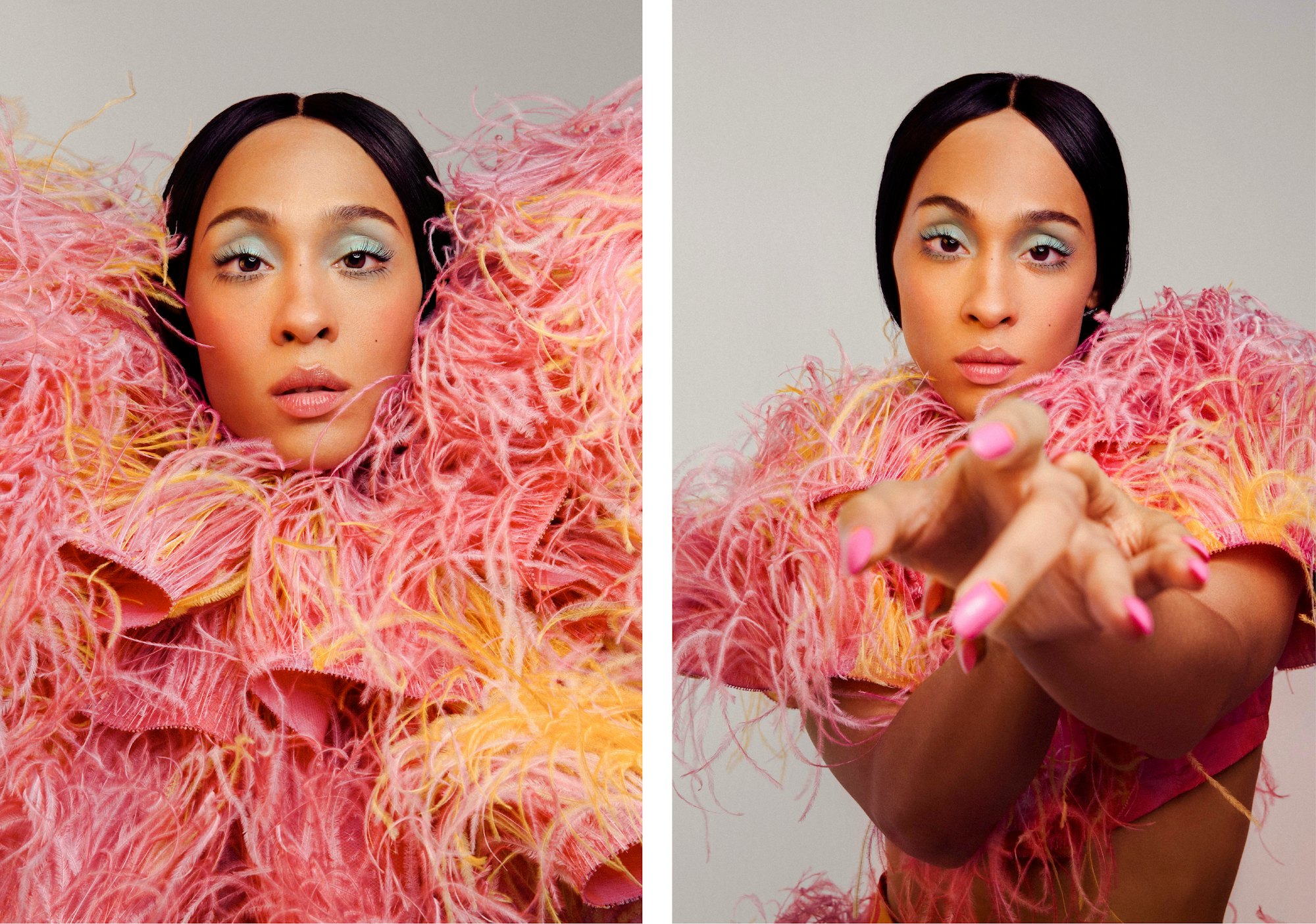 Our muse and model for this shoot, Mj Rodriguez (you know her from Pose on FX), has been a beauty enthusiast since as far back as she can remember. In high school, she wore mascara “every single day,” and now her go-to everyday makeup involves doing her brows, eyeliner, and “possibly a lip.” But when it comes to formal events, Rodriguez says she’s always trying new things. “I think makeup is an extension of your elevated self,” she says. “There’s a beauty beyond the makeup, but makeup is something that is a plus to the canvas. It’s a way to express yourself. It’s a way to be you. I’m a testament to that. It’s something that’s very liberating. [Makeup] is nothing to hide behind, and it’s nothing to be afraid of either.”