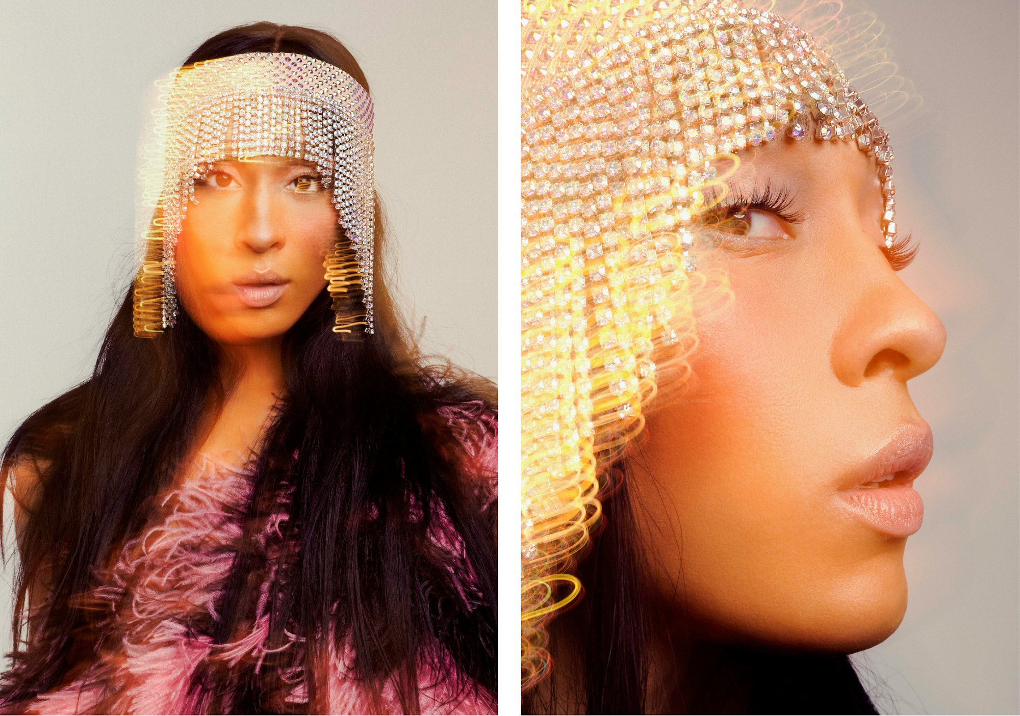 Brooke Nipar. Headpiece and stole: Gucci.